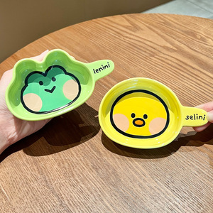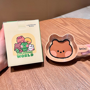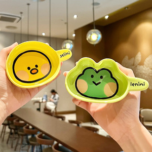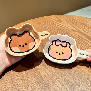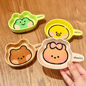 漫画ヒグマセラミックディップソーサー調味料ソーサーハンドル付きクリエイティブスナックソーサー釉下色醤油酢ソーサー