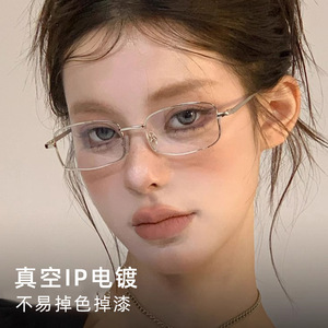 近視用の高感度純チタンシルバーフレームメガネ、度付きスクエアフレーム、女性用のインターネットセレブ超軽量フレーム、丹陽メガネ、スモールフレーム