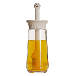 かわいいオイルブラシ、ボトル付き、家庭用ガラス一体型オイルブラシボトル、高温耐性、キッチン、ベーキング、バーベキュー用オイルブラシ、シリコンブラシ