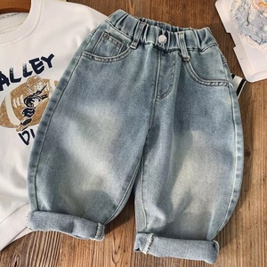 子供用ソフトジーンズ、ゆったりバージョン、小中型子供用春秋女の子カジュアルパンツ、男の子服、韓国風ベビーズボン