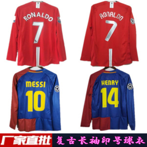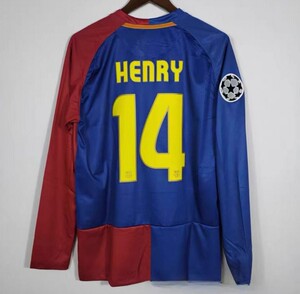 0809 バルセロナ ホーム 長袖 プリント No.14 HENRY+UEFAチャンピオンズリーグバッジ