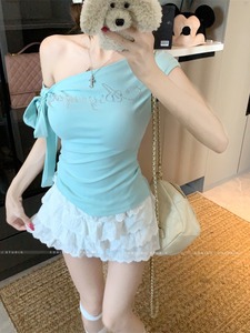 AYF|「オルオユディア」2025年新作夏スタイルオフショルダーストラップスリムウエストデザイントップス女性用