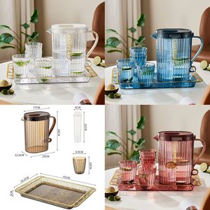 クロスボーダープラスチック金メッキコールドケトルセット夏の家庭用ライト高級大容量デスクトップ水出し茶ドリンクフラワーティーポット