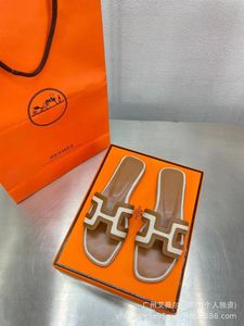 Dブランドのビーチサンダル、カジュアルなグレーの刺繍入りフラットサンダル、本革のワンラインサンダル、人気のMフラットサンダル、履き心地の良いサンダル