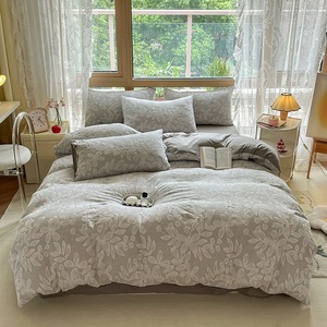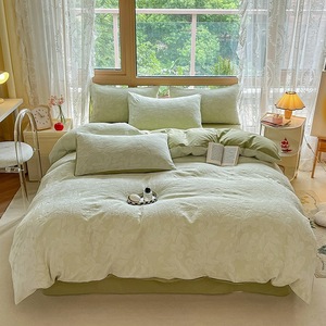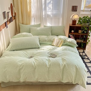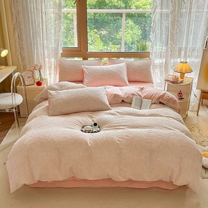 二層糸ベッド4点セット 純綿100 ジャガード ピンク 掛け布団カバー ベッドシーツ ライト 高級 シンプル 寝具 ボックスシーツ