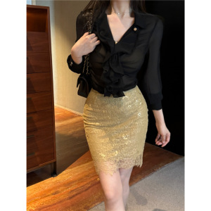 Yidaka Douyin同風【春日部】ウエストスリムフィットトップス+スカートスーツ