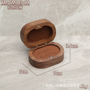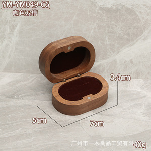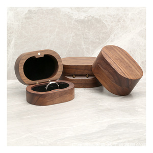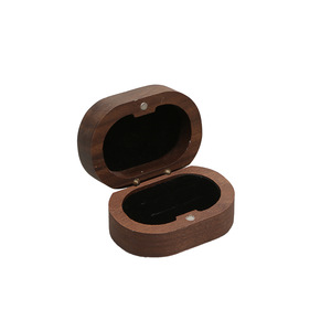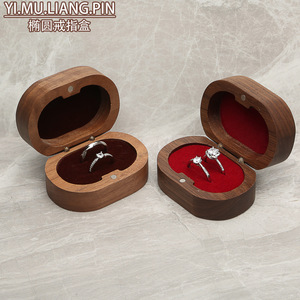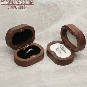 大きな楕円形のブラックウォールナット材のプロポーズリングボックス、レトロなペアリングボックス、ジュエリー彫刻収納包装ギフトボックス