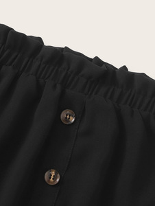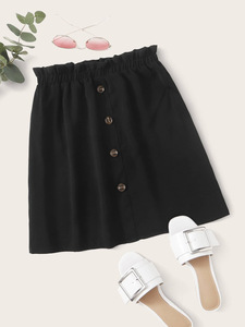 2025年欧米向け越境ECサイト、大きいサイズの女性用フロントボタン付きスカート、ウエストにフリルが付いたハーフハイウエスト