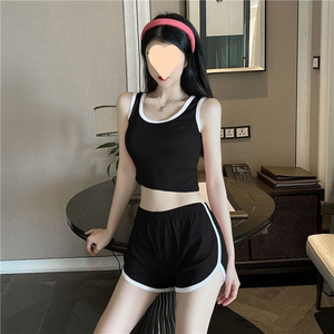 夏ノースリーブカジュアルスポーツスーツ女性の韓国ファッションランニングスポーツベストショーツヨガスリムツーピースセット