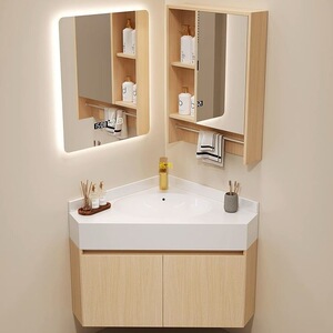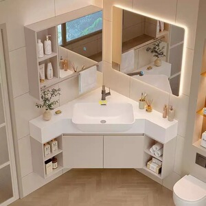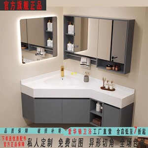 コーナーバスルームキャビネットロックスレートシームレスセラミック一体型洗面台バスルーム小型三角形洗面台中国風