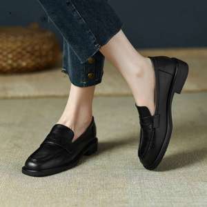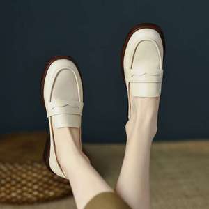 フレンチスタイル 2025 春と秋の新作英国スタイルソフトレザーローファー厚いヒールソフトソールスリッポン小さな革靴女性のトレンディな靴