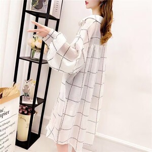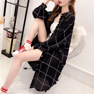 2025年夏用 格子柄シャツ 日焼け止めジャケット レディース 薄手 韓国風 ゆったり UVカット ミドル丈 長袖