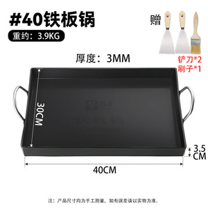 40cm極厚角型(足付)鍋+スパチュラ2本+ブラシ1本