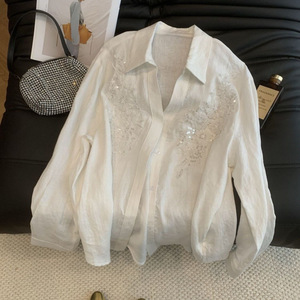 ヘビースパンコールデザイン長袖シャツトップ 2025 エスニックスタイルの新しいカジュアルルーズ日焼け止めシャツ女性のための