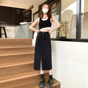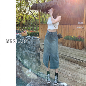 女性のためのハイウエストスリットデニムスカート 2025 新しい夏 A ライン小尻梨型ボディロングスカート