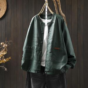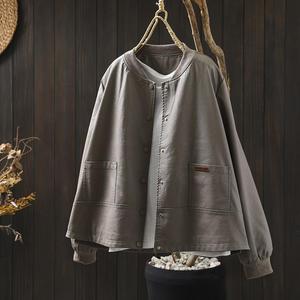 女性用バックウッドステッチスタンドカラープレザージャケット、ゆったりとした春と秋の個性カジュアル長袖野球ジャケットトレンディ