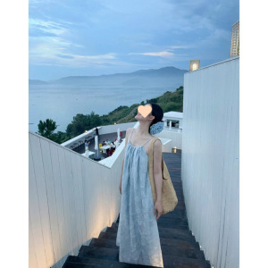 法式海边度假风重工提花吊带连衣裙夏季新款气质宽松显瘦仙女长裙