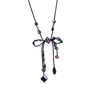 ダークガラスリボンビーズタッセルネックレス、ハイエンド鎖骨チェーン、ニッチで多用途なファッションアクセサリー