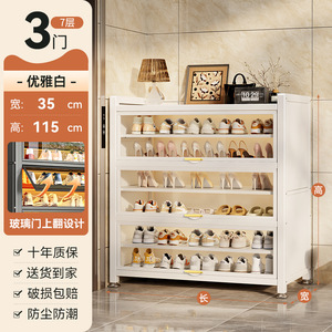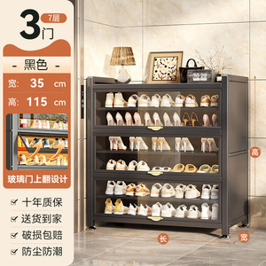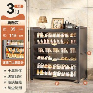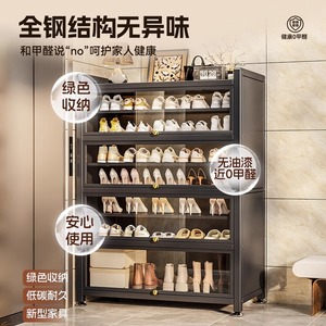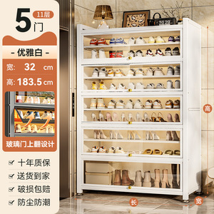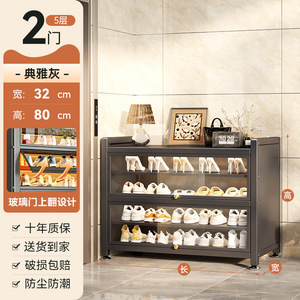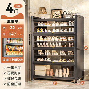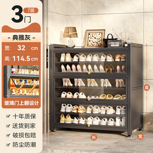 スチール製下駄箱、玄関用多層大容量収納キャビネット、ガラスドア付き玄関ドア、防塵金属製靴ラック