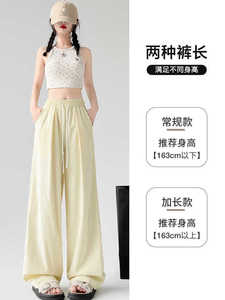 夏用の女性用イエローミルクワイドレッグパンツ、薄くてゆったり、スリム、ハイウエスト、ドレープ、小柄なアイスシルクカジュアルミルクレザーパンツ