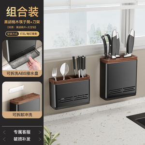 ウォールナットナイフホルダー収納ラックキッチン壁掛けスペースアルミナイフホルダー箸ホルダー一体型多機能ナイフ収納ラック