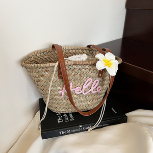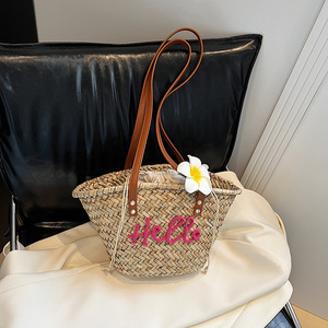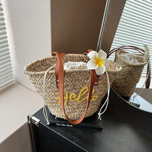 わらビーチバッグ夏の水草織りショルダーバッグ海辺休暇脇の下バッグ女性のブルーサブバッグ