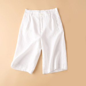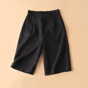 広脚5五分ズボン夏の新型綿麻カレー色カジュアルスーツ半ズボンレトロ外着半ズボン女A4038