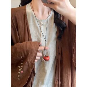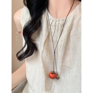 新しい中国風の柿如意ペンダントロングネックレス女性のエスニックスタイルレトロシンプルなセーターチェーン中国風ニッチアクセサリー