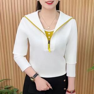 时尚假两件半拉链拼色小衫女t恤2025春季新款妈妈装百搭弹力上衣