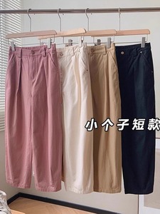 女性用ウォッシュドピュアコットンハーレムパンツ、夏用薄手ルーズストレートカジュアルパンツ、小柄な人向けハイウエストオーバーオールキャロットパンツ、トレンディ