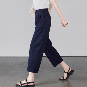 ネイビーブルー【ウォッシュドピュアコットンクロップドパンツ】
