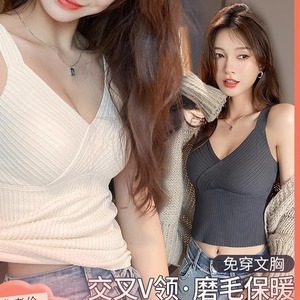 暖かい下着の女性の秋の服は胸のクッションのベストの女性のブラジャーの一体の底のシャツの秋の冬の中で愛情深い猫を掛けます。