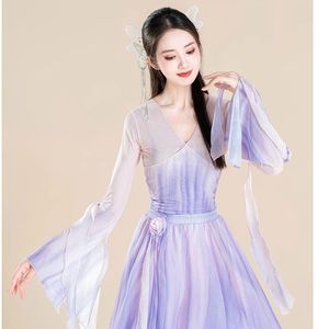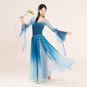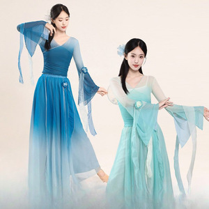 原创古典舞蹈服渐变花朵纱衣飘逸大摆裙中国舞练功服演出服 超仙