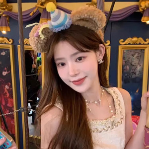 ディズニー購入 シェリーローズ ヘッドバンド 女性用 かわいい ダッフィーベア リボン ぬいぐるみ ヘッドバンド 遊園地 写真撮影 ヘアピン