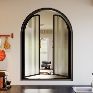 八铁法式风复古窗户隔断铁艺玻璃老式钢窗拱形老洋房室内平开门窗