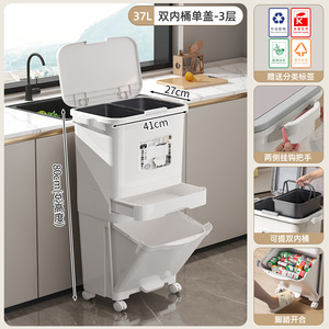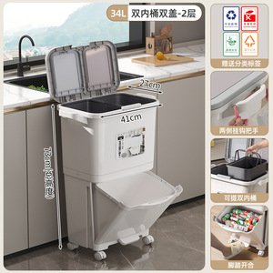キッチンゴミ箱 家庭用生ごみ分別ゴミ箱 蓋付き 和風二層ゴミ箱 乾湿分離ゴミ箱