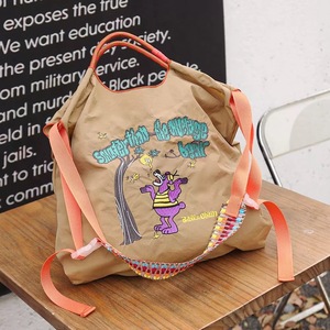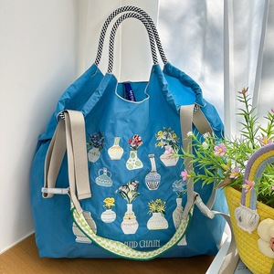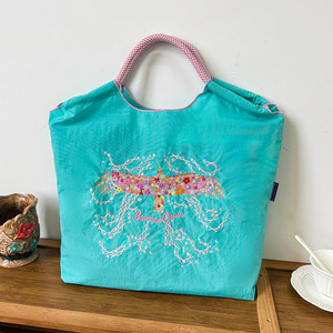 新しい日系ボールチェーン刺繍百合レジ袋小衆万針刺繍ナイロンハンドバッグ環境保護袋