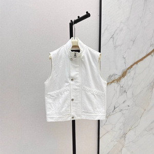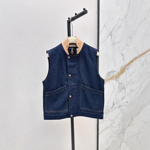 深圳南油25春夏极简设计螺纹立领装饰牛仔马甲外套