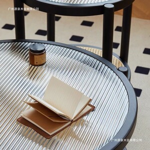 日式玻璃茶几长虹实木藤编组合北欧简约客厅家用小户型圆形