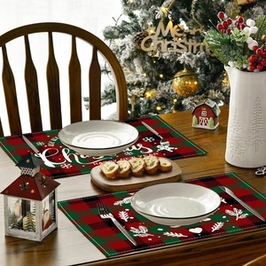 クロスボーダーテム人気のクリスマスプレースマット冬祭りリネン断熱マットセットプリントリネンテーブルクロス卸売