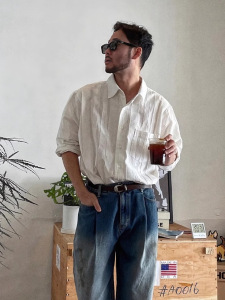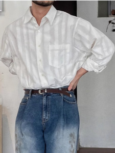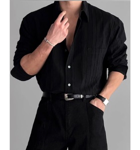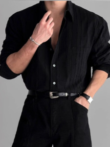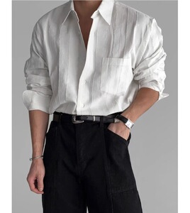 纯色高级感棉麻感衬衫男士长袖春夏季薄款休闲宽松轻奢衬衣外套潮