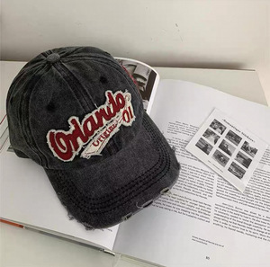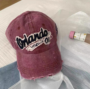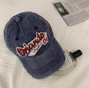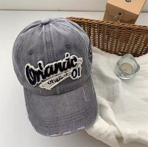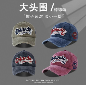 アメリカンレトロなダメージ加工ウォッシュデニムベースボールキャップ、頭囲が大きい女性用、顔が見える小さなつばの広い帽子、メンズひさしキャップ
