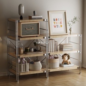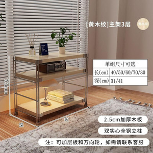 日本式物置棚多層収納棚床置き本棚キッチン電子レンジ収納家庭用原木シンプル棚