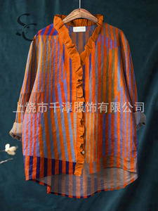 2025 ヨーロッパとアメリカの新しいスタイルのアマゾン独立ステーション花柄レースカラートップ 0168 快適なカジュアルリネンラウンドネック半袖