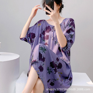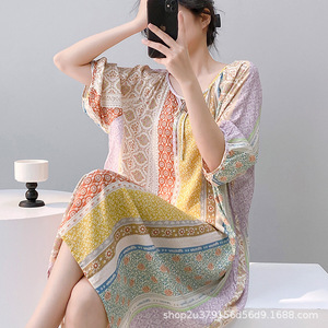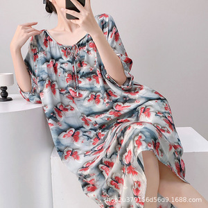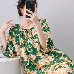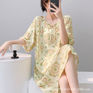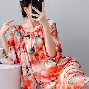 2025 新しい女性のための寝間着春と夏の綿シルク新中国風クールな人工綿ロングスカート綿シルクパジャマ大きいサイズ