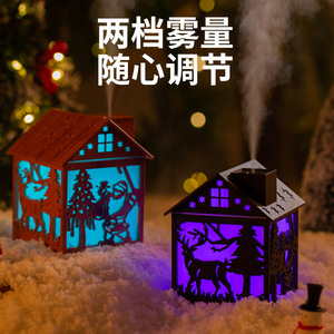 2025 新しい木製ハウス加湿器クリエイティブ小さなギフトカラフルなナイトライト装飾品ホームサイレント水分補給 USB クロスボーダー