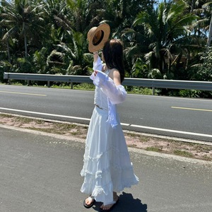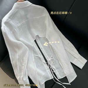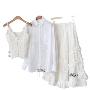 043005 新しい夏の女性のルーズな大きなシルエットの背中中空リネン白シャツ + サスペンダー + スカート セット