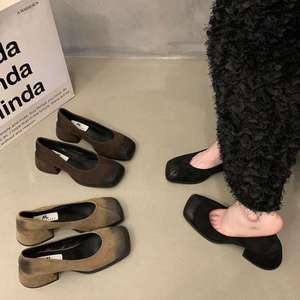 高級フレンチハイヒール、メリージェーンシューズ、秋冬レトロローファーシューズ、黒靴、韓国風婦人靴