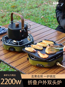 双頭カセットストーブ アウトドア キャンプ カセットストーブセット バーベキューストーブ 鍋 お茶作り アウトドア ピクニックストーブ