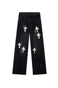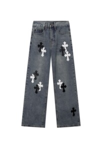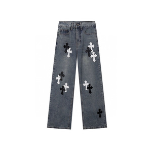 春夏の新型クロス布個性創意趣味潮牌水洗い男女カップルのストレートジーンズ